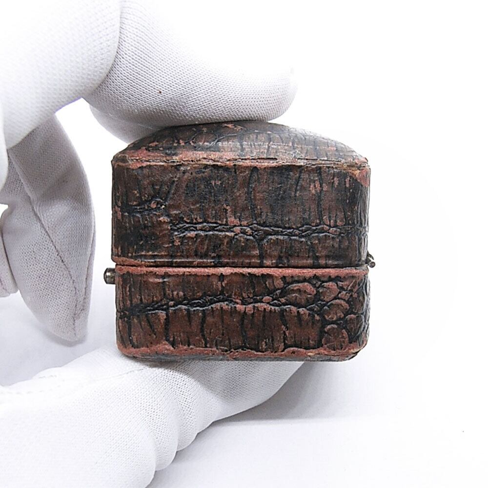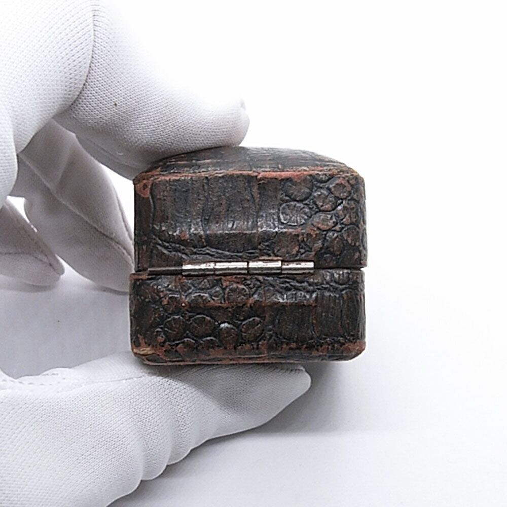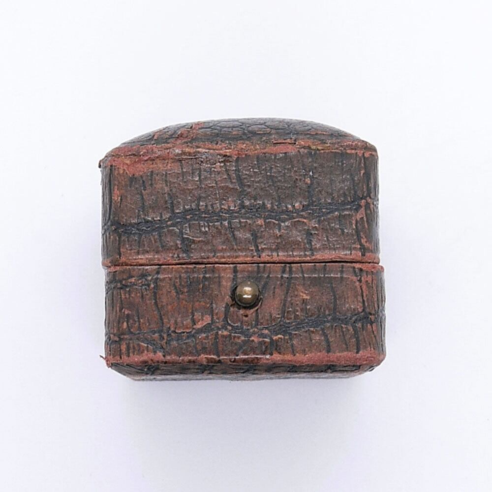 落ち着いたブラウンの外装と、経年による風合いのあるベルベット内装が特徴の小ぶりなボックスです。リングケースとしてはもちろん、ディスプレイやコレクション用途にもおすすめです。