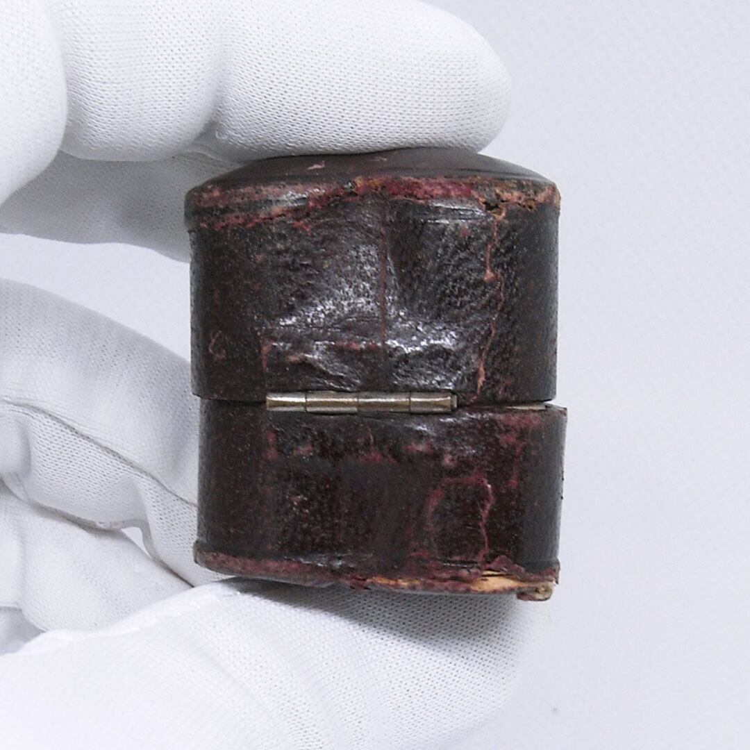 落ち着いたブラウンの外装と、経年による風合いのあるベルベット内装が特徴の小ぶりなボックスです。リングケースとしてはもちろん、ディスプレイやコレクション用途にもおすすめです。
