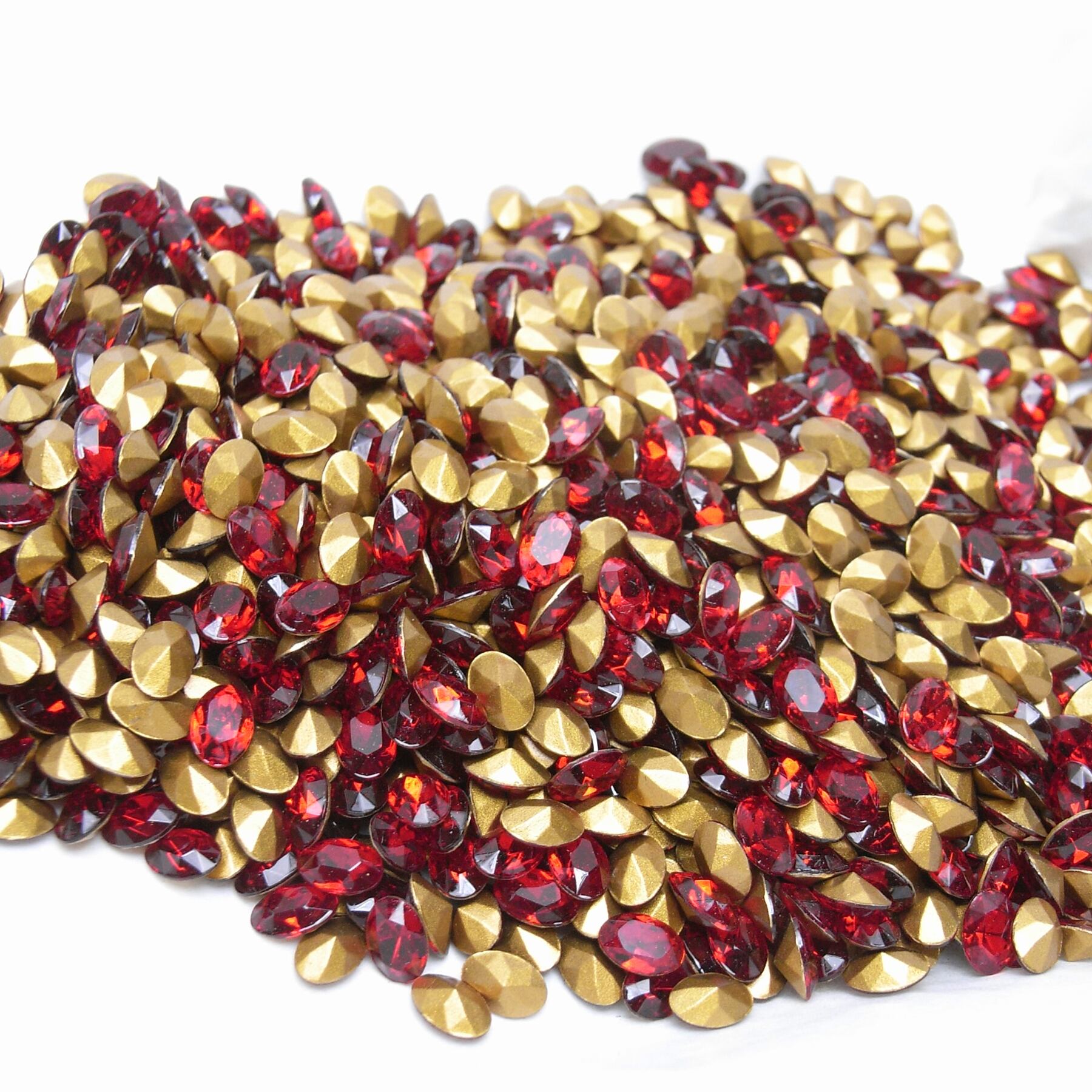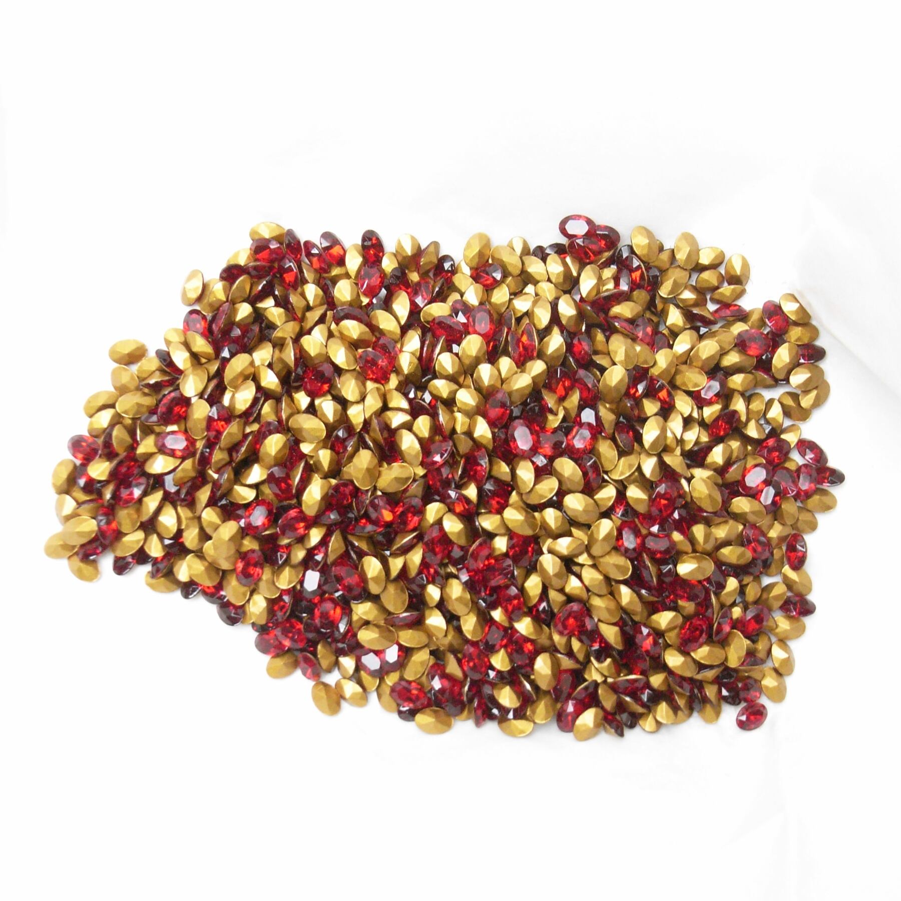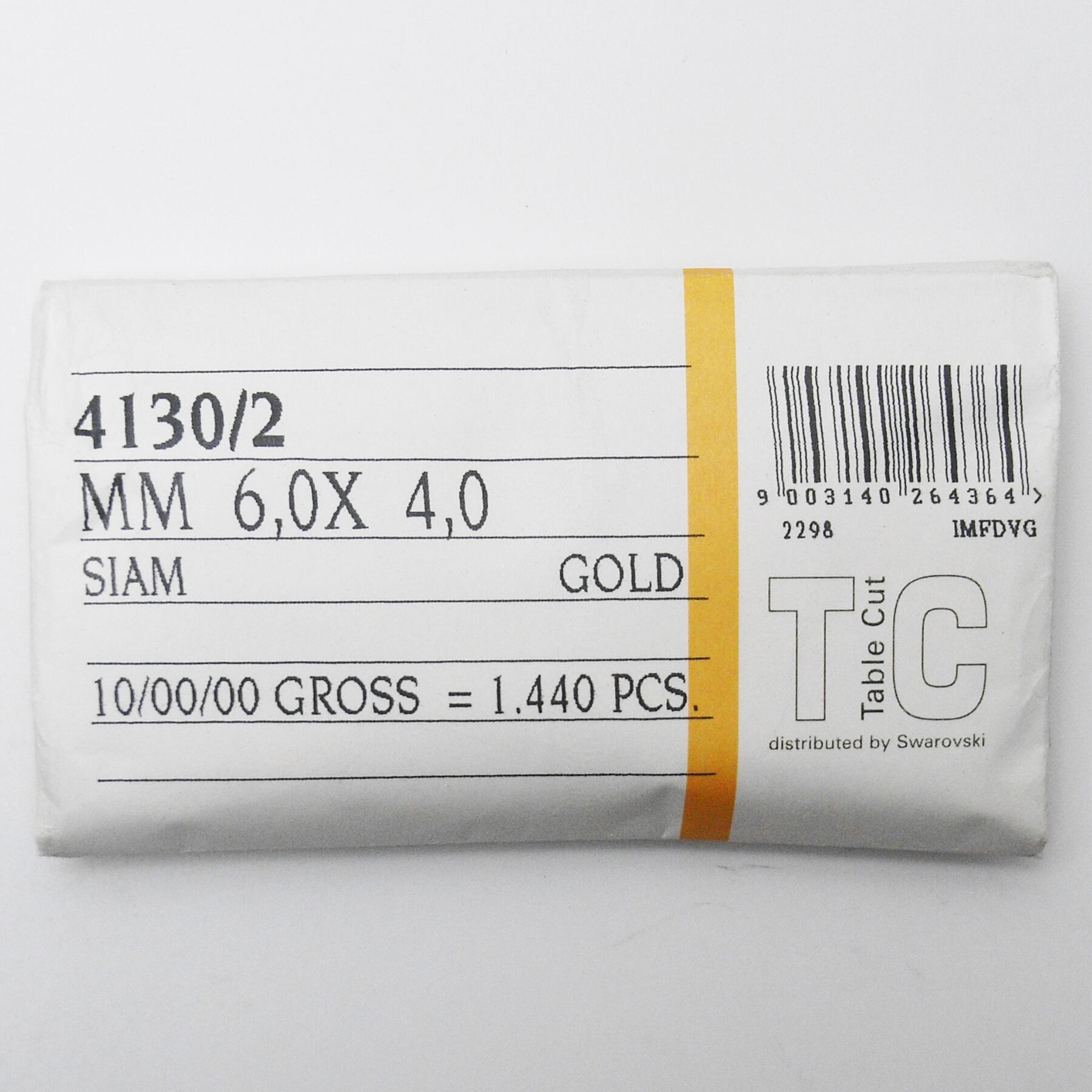 1440pcs Vintage Swarovski 4130 Siam Rhinestones Oval 6x4mm Gold Foil Austria (10 Gross)#013