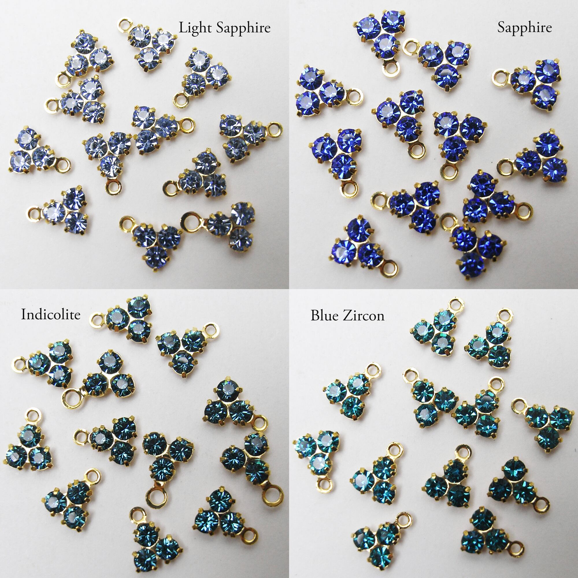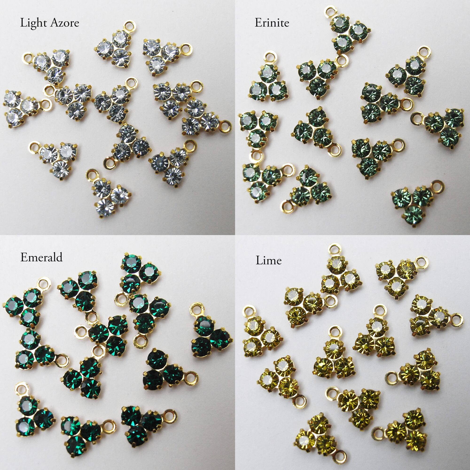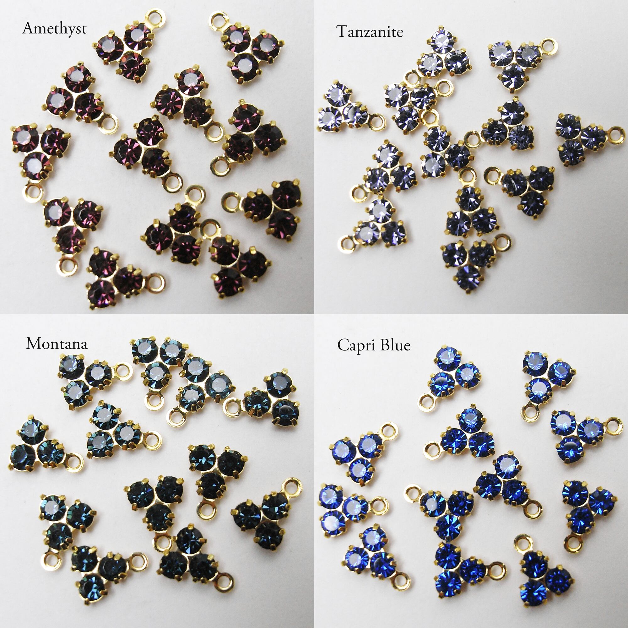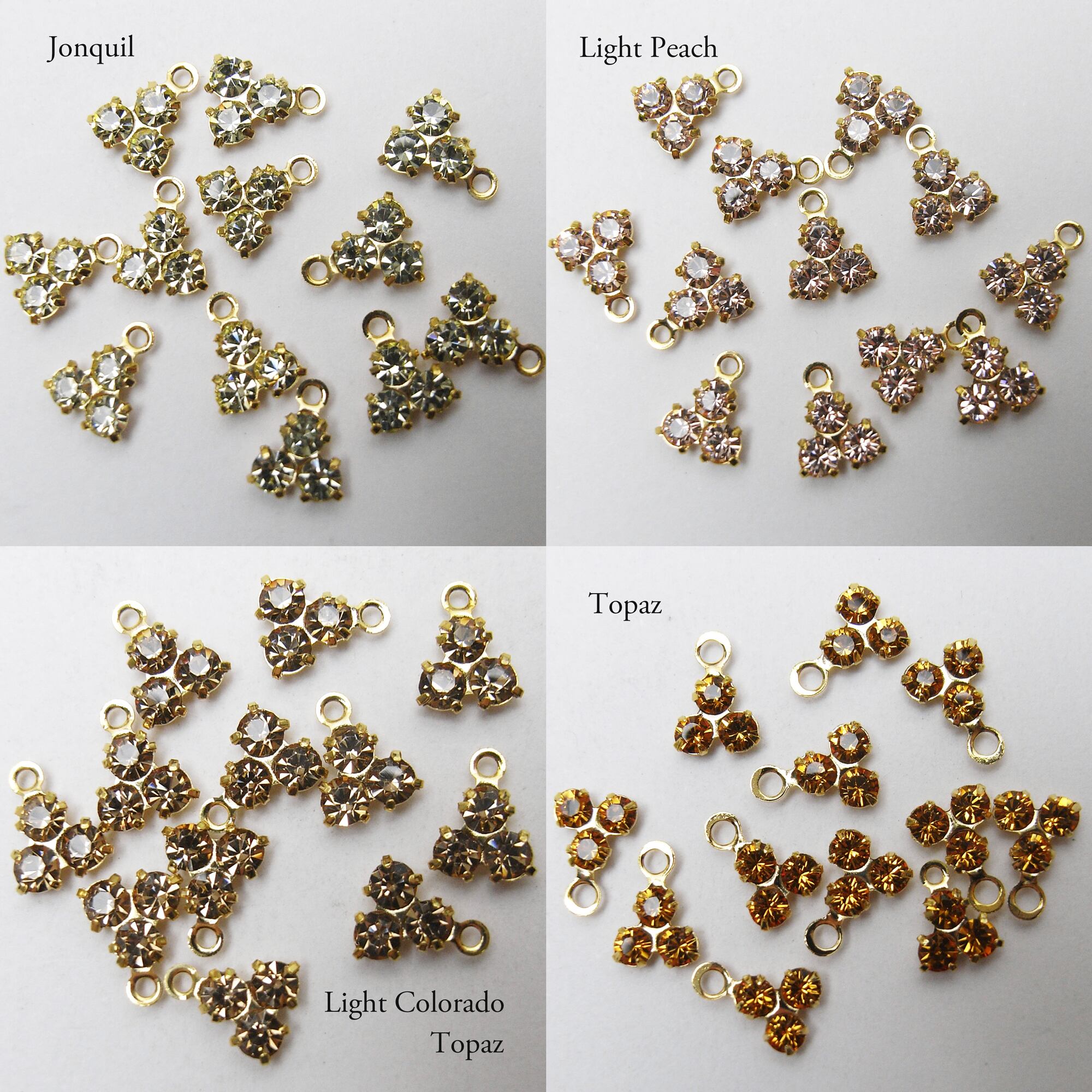 12pcs Vintage Swarovski Triangle Charm 5.5mm Gold Setting (28 Colors)