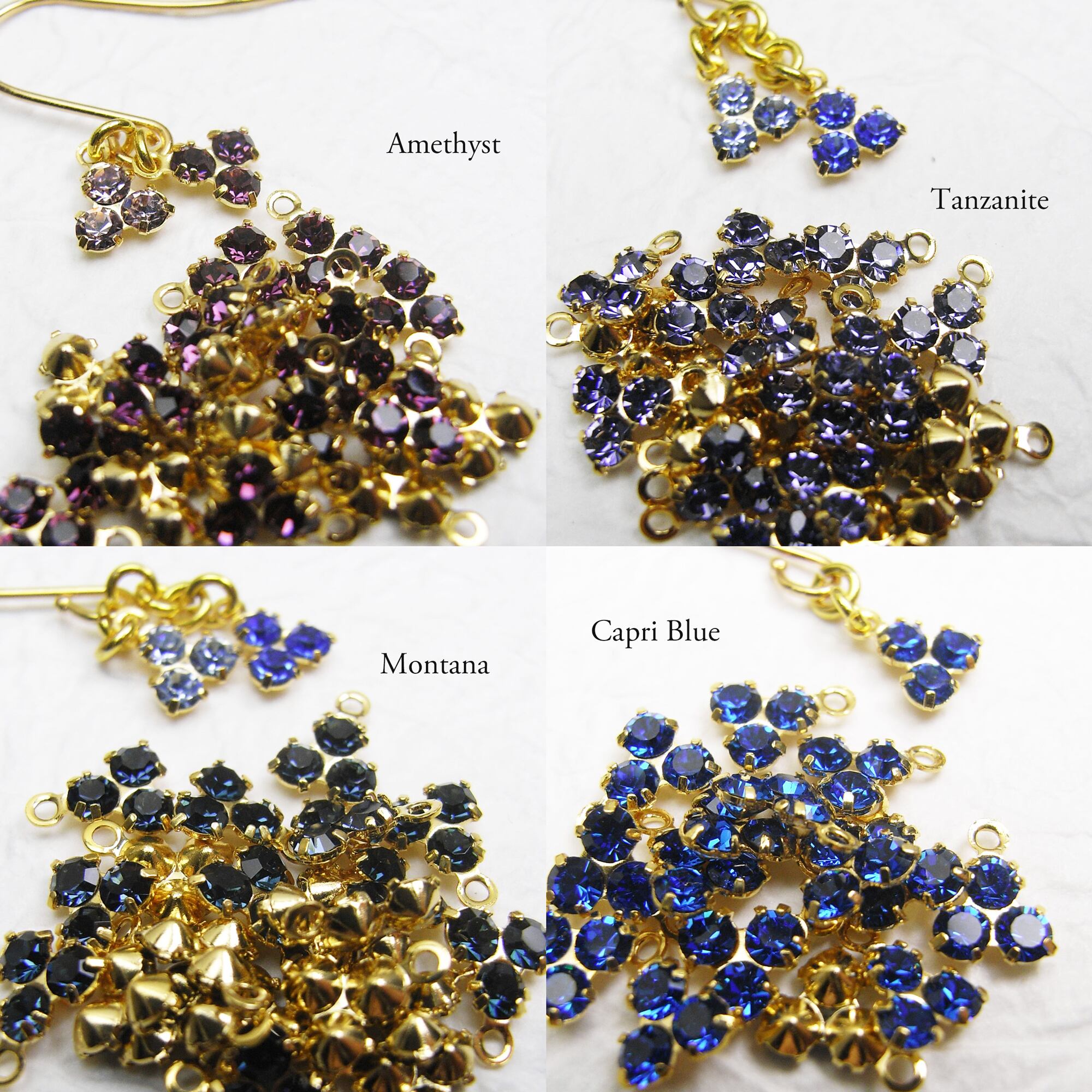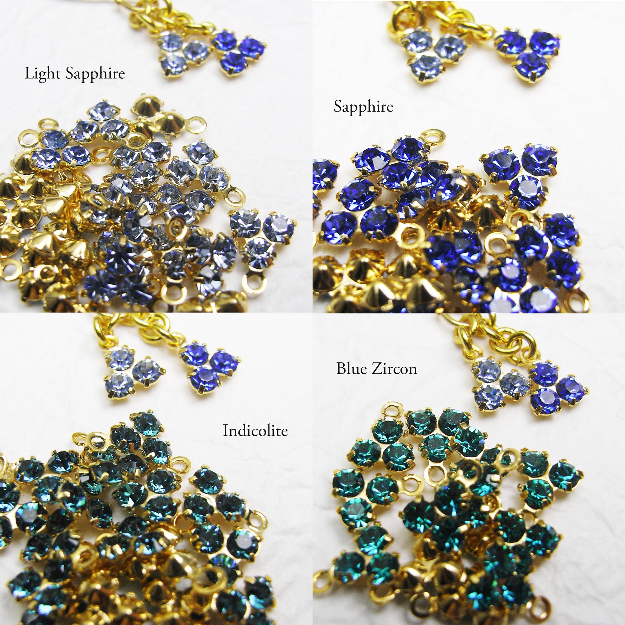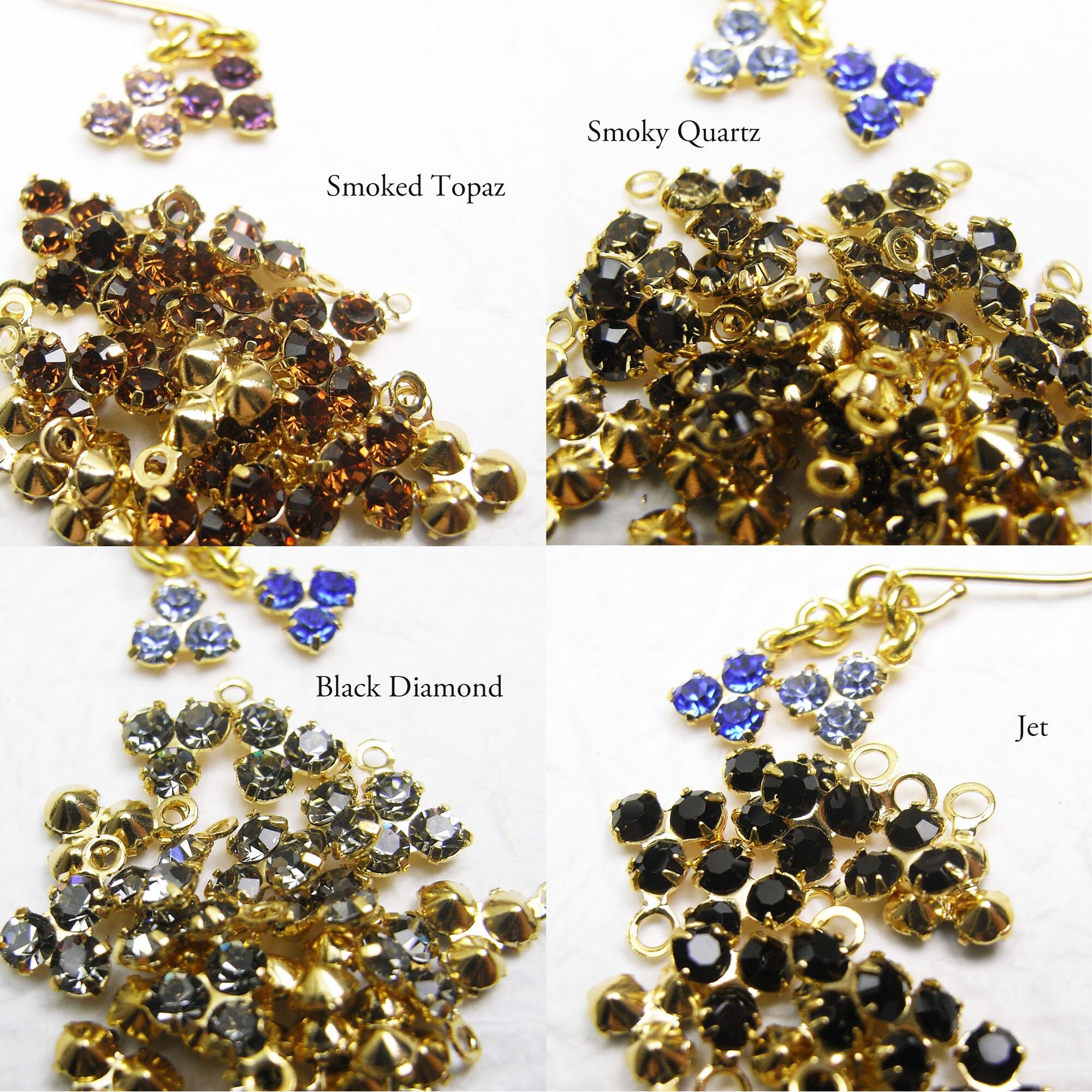 The settings are vintage brass parts custom gold-plated exclusively for our shop.