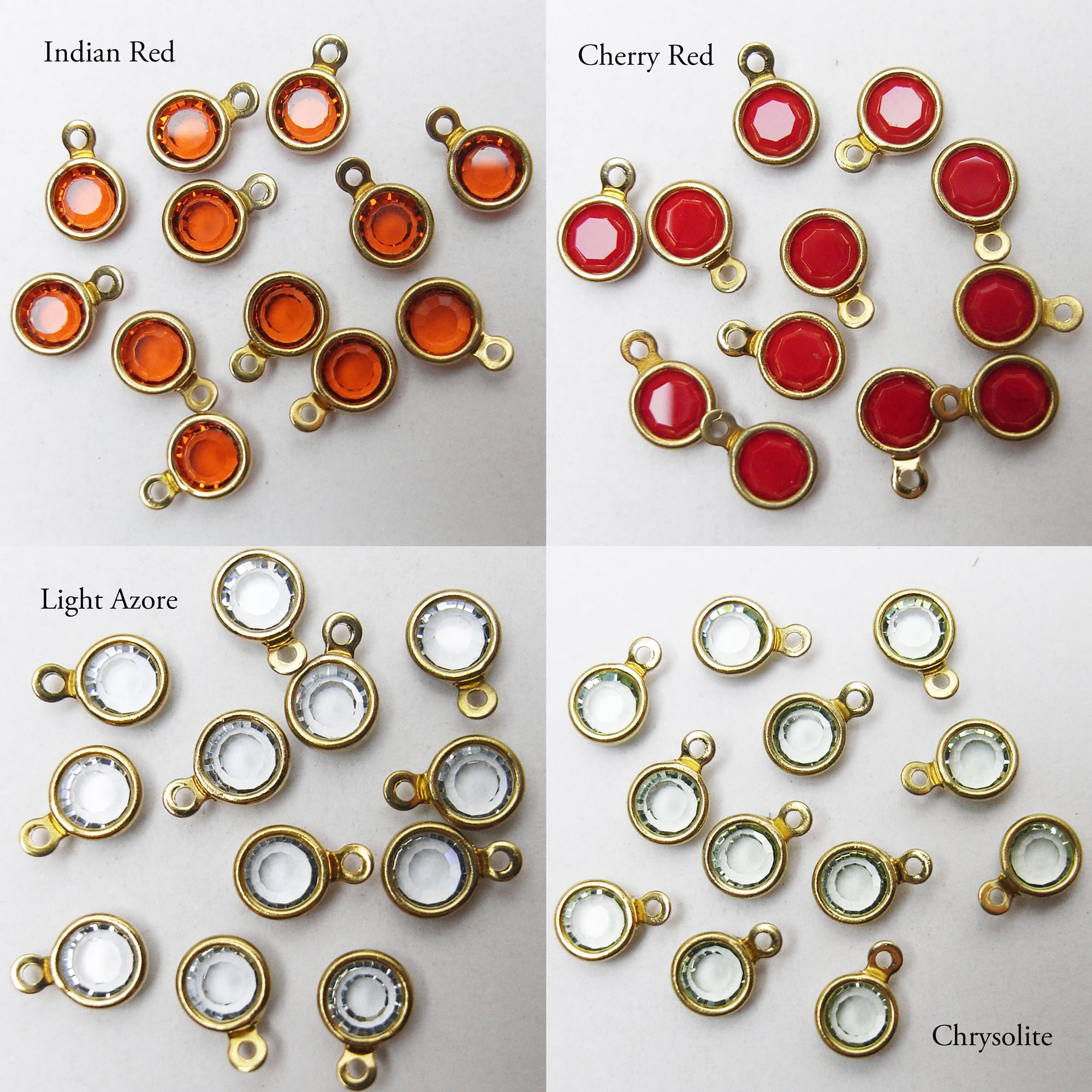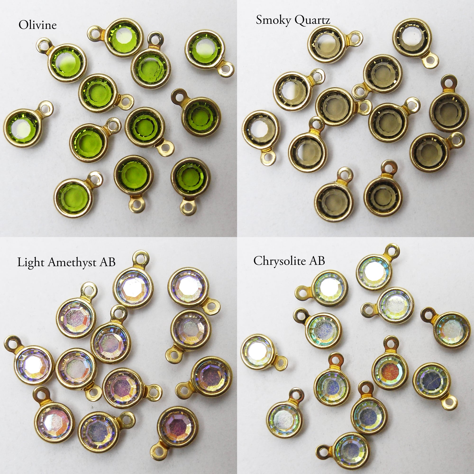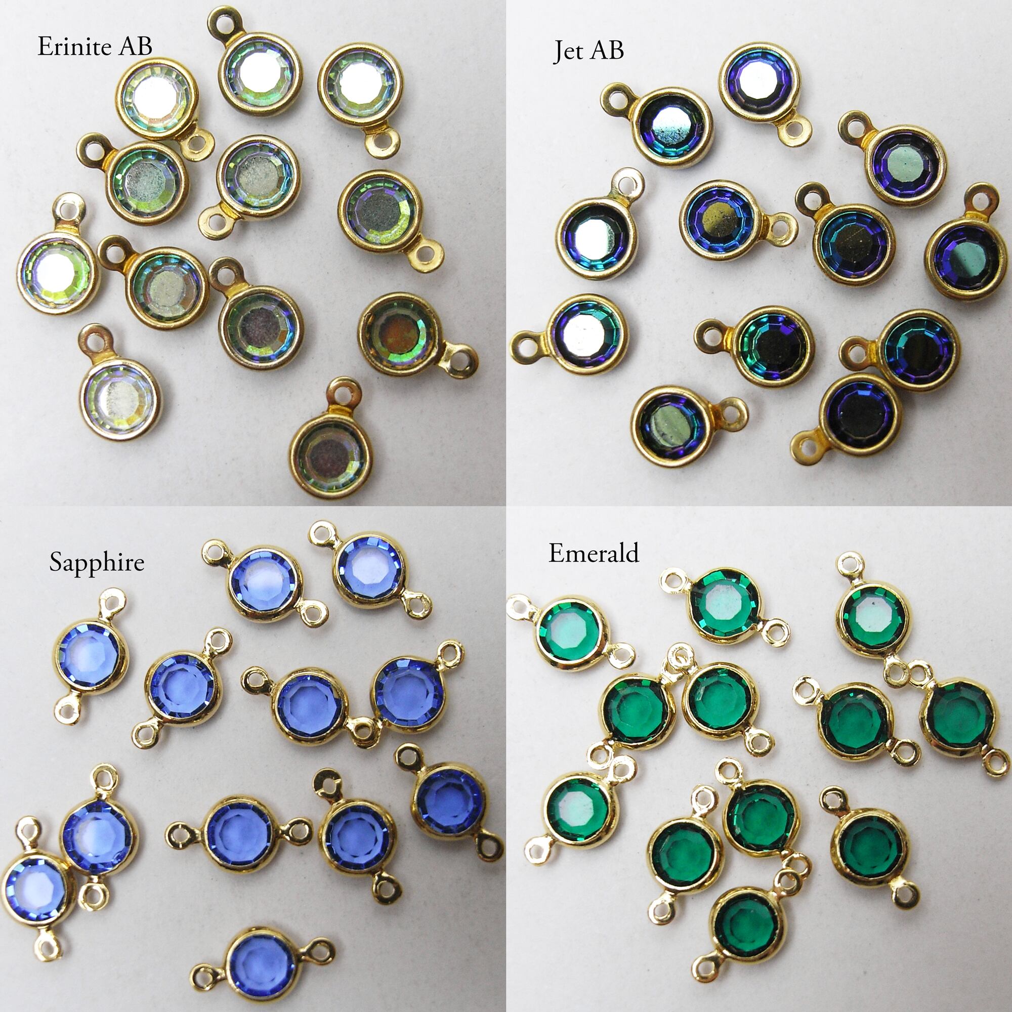 Vintage Swarovski stones set in these custom gold-plated settings.