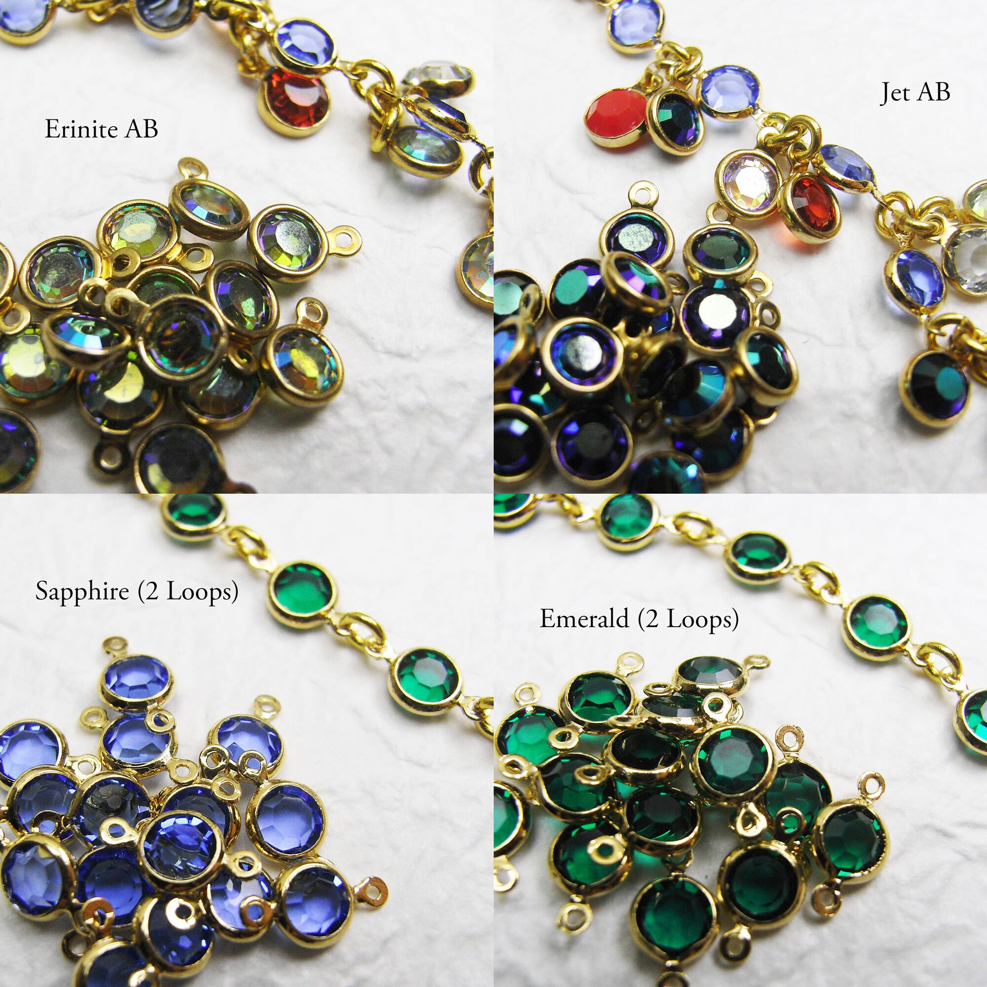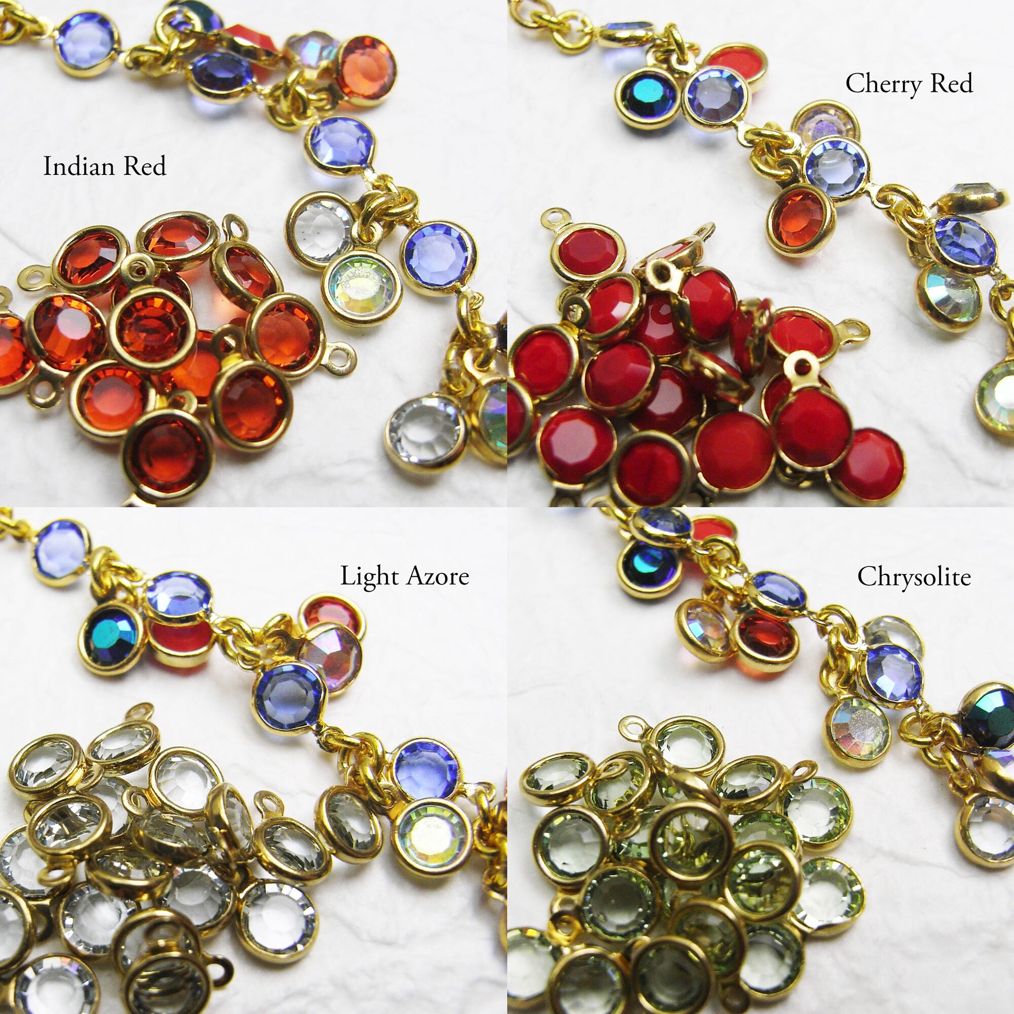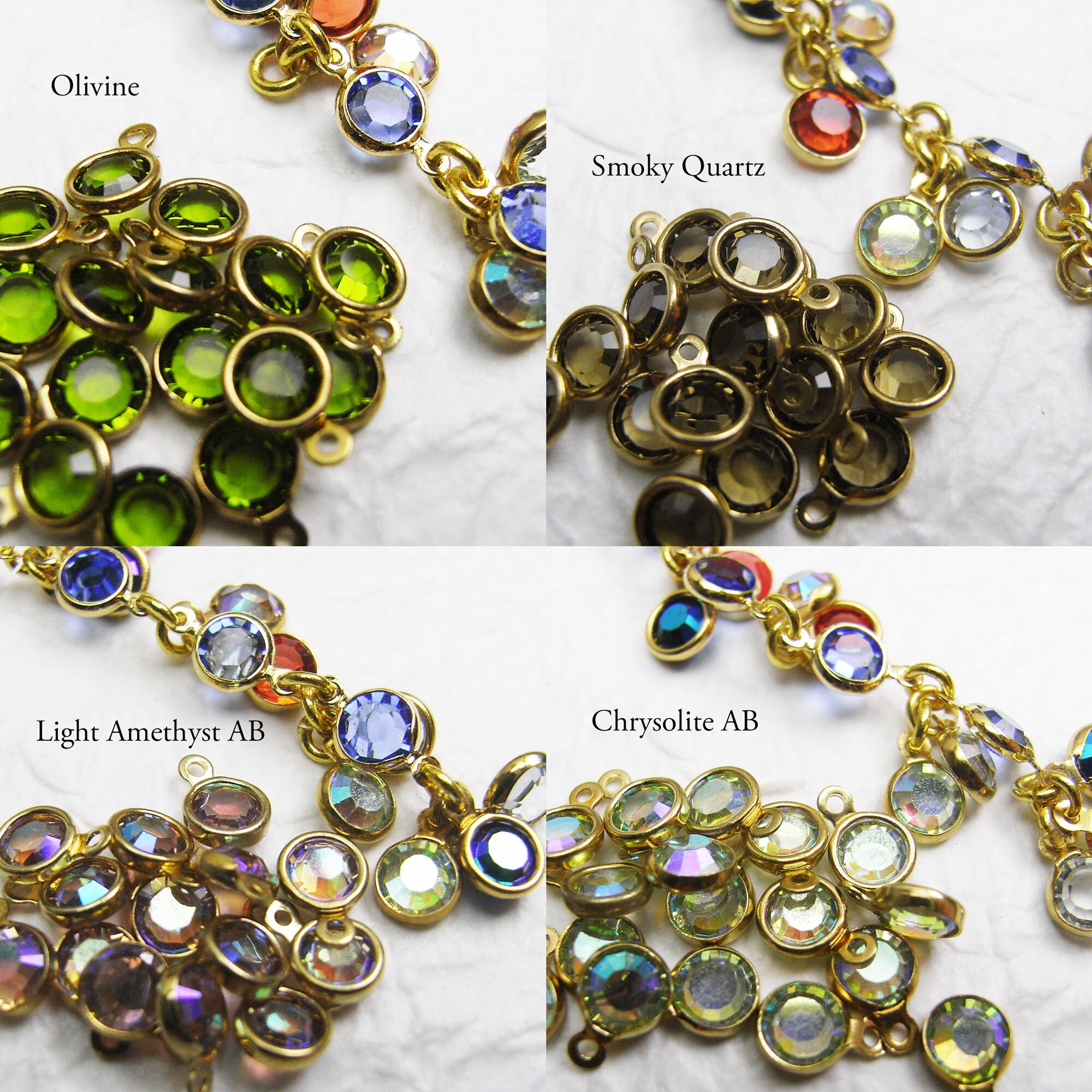 Vintage Swarovski stones set in these custom gold-plated settings.