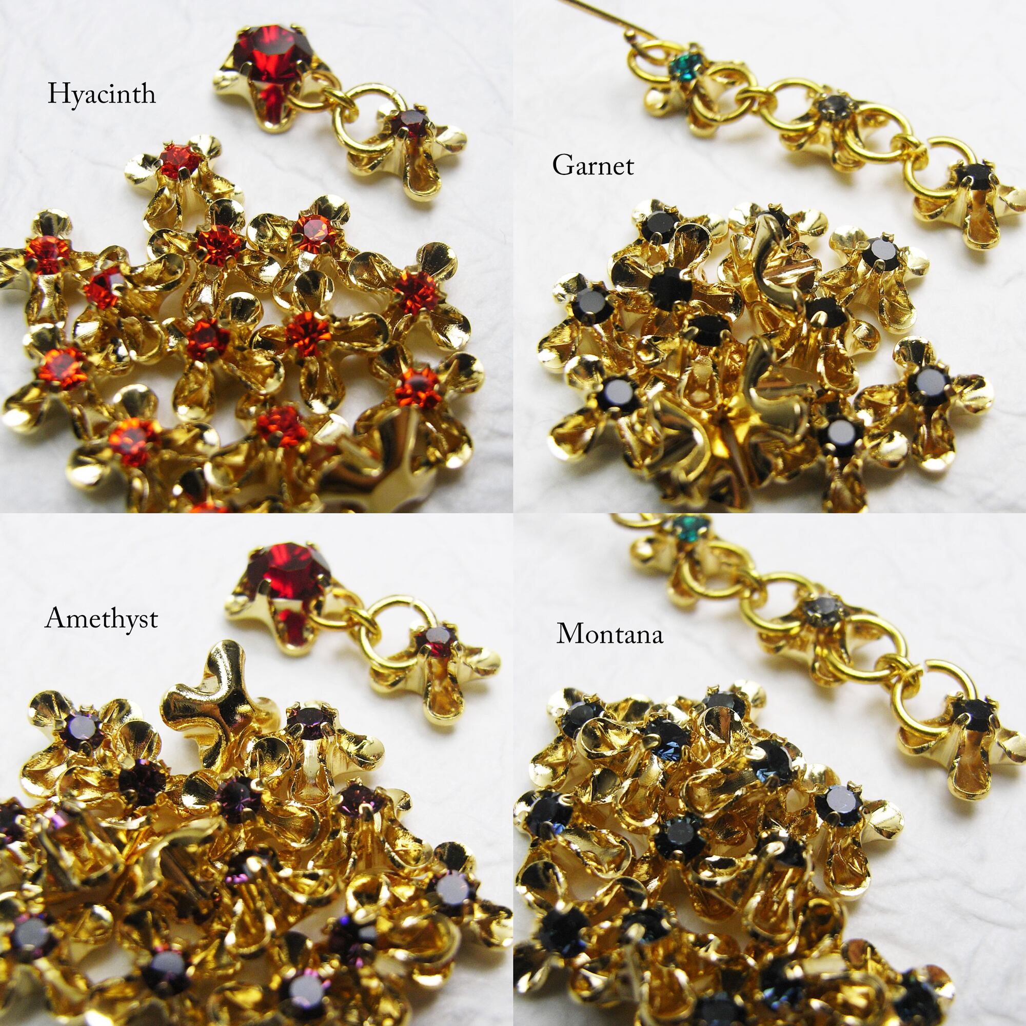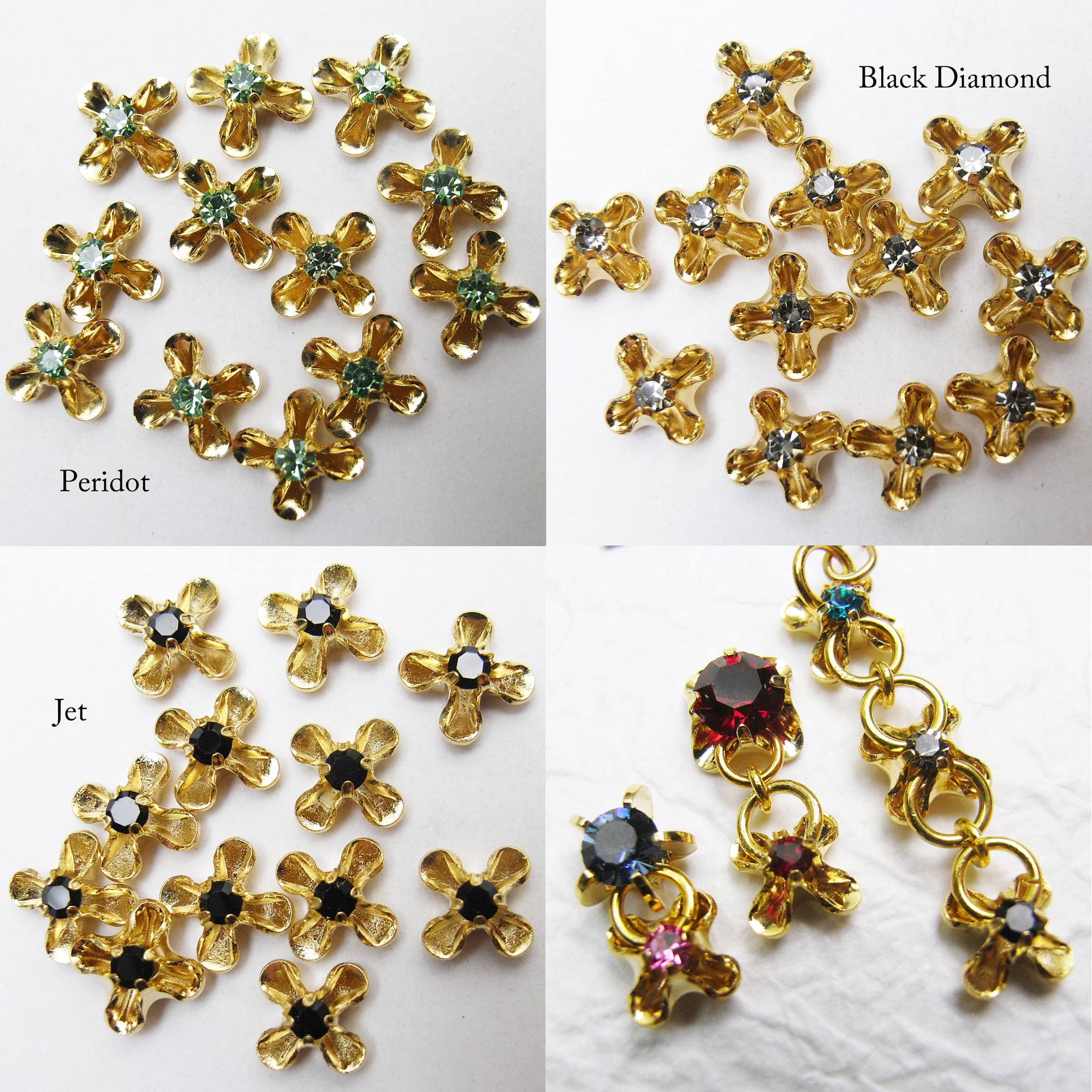 Vintage Swarovski crystal with brass settings, custom gold-plated by our shop.