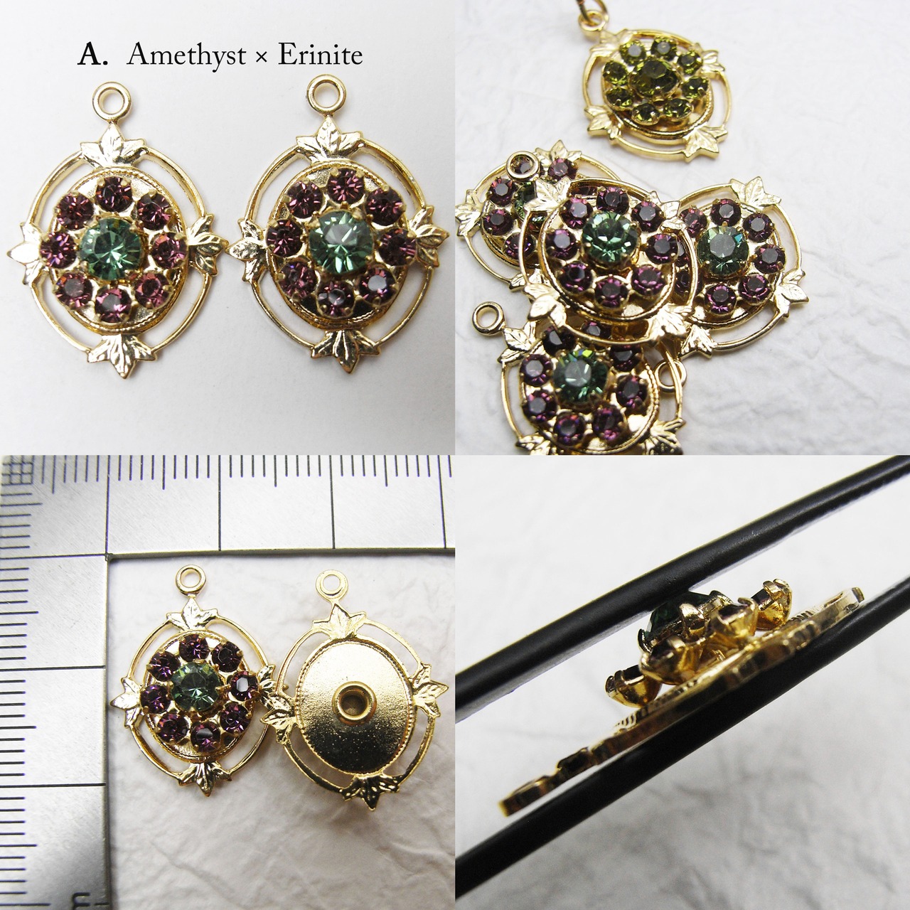 ブラスセッティングのヴィンテージスワロフスキーを、